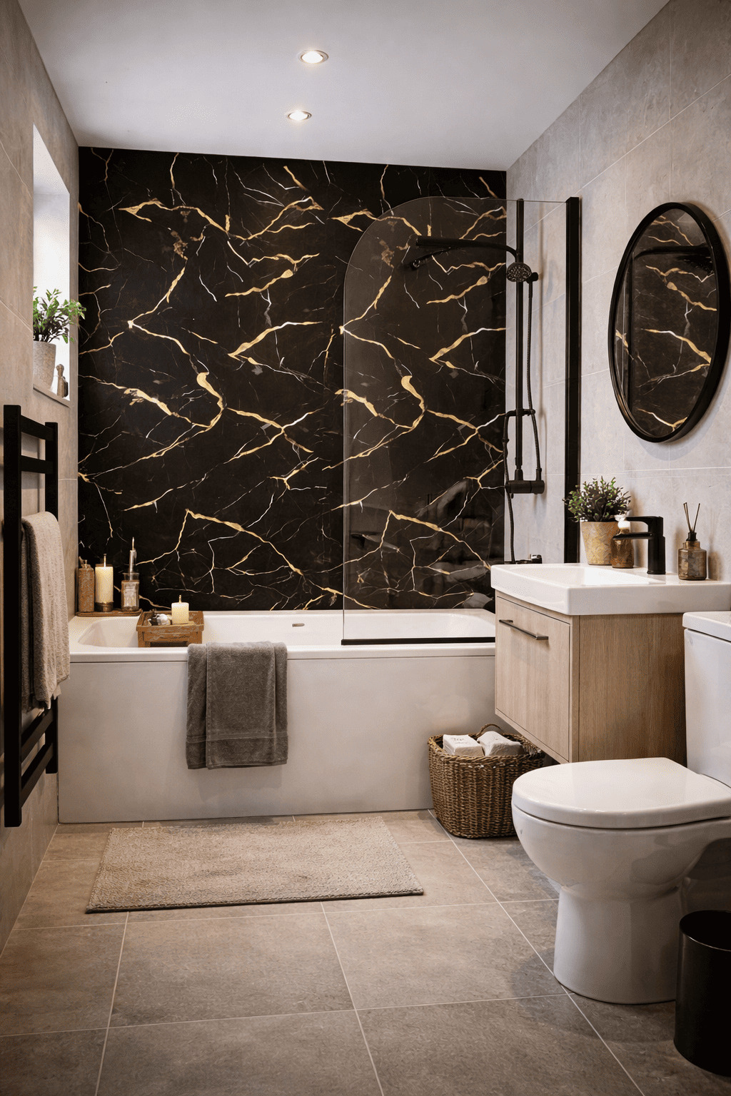 10mm Bathroom Shower Wall Panels | 240cm X 60cm | Black & Gold Marble Effect | 100% Waterproof